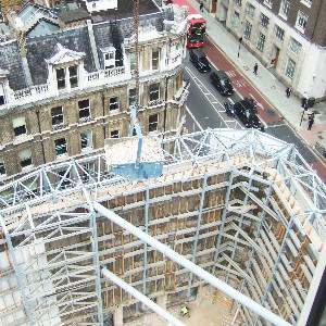 - 拆除涉及引入超过90米的非常复杂的外立立面保留系统。基于桩和肯德基地基的组合,安装了临时结构,以保留伦敦市最精致的石材外观之一,同时保护行人在极其狭窄,繁忙的公共行道上。