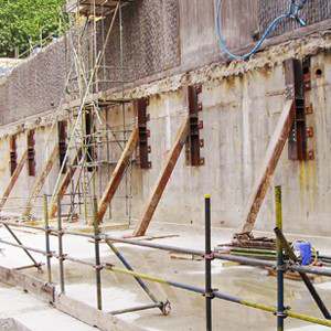 - 为了配合拆除和临时工程的顺序,在工地上分阶段建造了一个900毫米厚的钢筋混凝土筏板,混凝土板沿拱顶旁边的墙壁增加到1900毫米,以进一步加强。