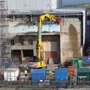 - 放射性结构的去除包括电站循环厅和放射性鼓存储之间的受污染桥。