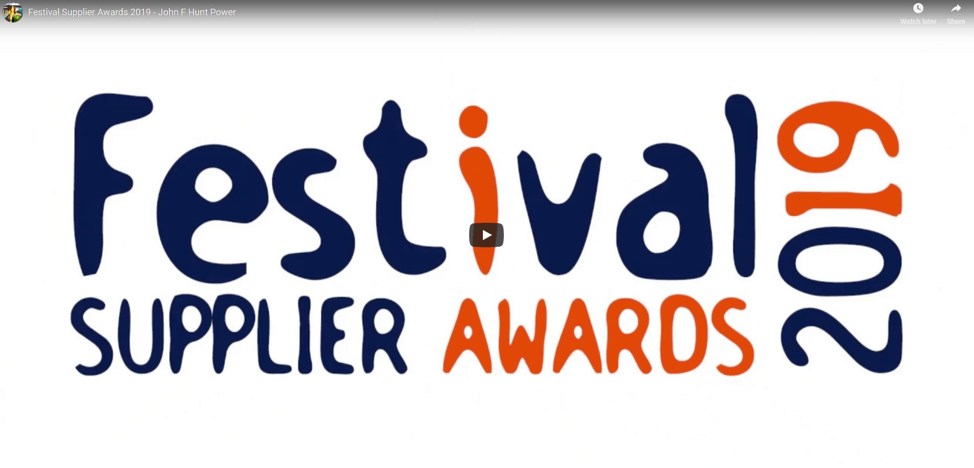 欧宝不给提款John F Hunt Power已入围2019年Festival Supplier Awards的最佳工厂/设备租赁奖。